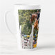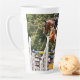 Ein fotografisches Design von Pferd und Reiter in einem Showspringwettbewerb.