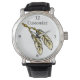 Uhr, Vintage Männeruhr mit schwarzem Lederarmband