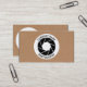 Eine Visitenkartenvorlage mit einem Blendensymbol in einem weißen Kreis mit geschwungenen Firmennamen und Geschäftstyp. Firmenname und Geschäftstyp auf der Vorderseite, mit Namen und anderen Kontaktdaten auf der Rückseite über die weiße Kreisseite ohne Blendesymbol für den Namen und den Auftragstitel, auf der links Seite angeordnet.