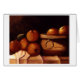Elegantes Stillleben von Äpfeln und ein alter Behälter mit Messingring auf Tuch
