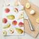 Küchenhandtuch mit Äpfeln und Birnen bedeckt.