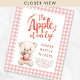 Apple of Eye Gingham Baby Dusche Winzer Windeln Raffle Baby Dusche Schild. Verfügbar in digitaler Form und gedruckt. Eine künstlerische Set-Typografie für den Apfel unseres Auges, ein niedlicher Teddybär mit einem Apfel und einem rosa Gingham-Hintergrund für dieses Design. Personalisieren Sie die Erholung der Wörter ganz einfach nach Bedarf.
