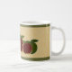 Die Tasse wird durch den feinfühligen Hintergrund, die dünnen, grüne Ränder mit bemalten, dimensionalen Äpfeln, die die Vorderseite überragen, mit Stil verkleidet. Suchen Sie nach anderen Mix- und Match-Produkten, strukturierte Maßkunst und gestalterisches Design durch kaps images