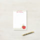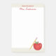 Niedliche Apfelillustrierung aus rotem Cartoon und eine gelbe Bleistiftzüge, die sich gegen den Apfel anlehnt. Es gibt einen Textbereich, der nun "From the desk of" zusammen mit einem anpassbaren Textbereich für einen Namen liest.