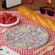 Diese niedliche und elegante Papiertafel ist mit einem korallenrosa Hintergrund mit roten, gelben und rosafarbenen Äpfeln, Blume aus weißem Apfel und marineblauen Blätter gestaltet. Personalisieren Sie es für Ihre Bedürfnisse. In meinem Geschäft finden Sie passende Produkte.