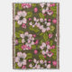 Handgezeichnete Apfelblüten und Bienen auf dunkelgrünem Hintergrund
