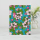 Handgezeichnete Apfelblüten und Bienen auf türkisfarbenem Hintergrund
