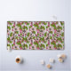 Handgezeichnete Apfelblüten und Bienen auf weißem Grund