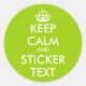 Apfelgrün rund Behalten Aufkleber | personalisierbar. Anpassbare Keepcalm Vorlage mit benutzerdefinierter Hintergrundfarbe und Text. Vintages Keepcalmandryon Thema. Erstellen Sie Ihre eigene Behalten ruhige Parodie.