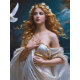 "Aphrodite: Göttin der Liebe und des Lichts". In einem zarten, klassischen Stil gehalten, bringt dieses Gemälde Aphrodite mit einer Touch moderner Eleganz zum Leben. Ihr goldenes Haar und ihr ruhiger Ausdruck spiegeln ihren Status als schöne Göttin mit einer Taube als Symbol für Liebe und Frieden und das Meer, das an ihre Ursprünge erinnert.