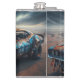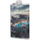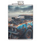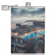 Blue Classic 1969 Chevy Camaro mit Blumen und Flecken Rost in der Wüste während der Apokalypse.