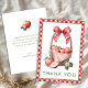 Danke in der süßesten Weise mit diesem Apfelkorb Baby Dusche danke Ihnen Karte. Es ist mit einem rustikalen roten Gingham-Rahmen, Aquarelläpfeln und einem bezaubernden Bogen gestaltet und eignet sich perfekt für eine Herbsternte oder ein Apfelfest. Personalisieren Sie die Insider-Nachricht, um den Gästen zu danken, dass sie Ihre Kleine mit Liebe duschen.