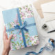 Eine Rolle hübsches, feminines Wrapping Paper mit einem Imitat Patchwork-Muster mit Vintagem Flair. Die rosa, blaue, grüne und weiße Blütenmuster, Leafy und Karo Gingham sind Teil der Posh & Painterly Kollektion "Apple Blossom".