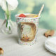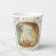 Darling Bunny Rabbit mit farbenprächtigem Holzland Blumenhintergrund. Der Hase sieht Karotten hinter einer rustikalen Gartentür. Public Domain Beatrix Potter Illustration. Ich habe es etwas für den Druck verbessert.