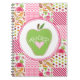 Un carnet pour des professeurs comportant une illustration d'une pomme verte décorée d'un coeur rose et d'un texte blanc "PROFESSEUR." L'arrière - plan est une conception inspirée par patchwork girly se composant des motifs de point de polka, de Paisley, de rayures, de zigzag, floraux, et de guingan.