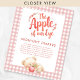 Apple of Eye Gingham Mitternacht spät abends Diaper Baby Dusche Schild. Verfügbar in digitaler Form und gedruckt. Eine künstlerische Set-Typografie für den Apfel unseres Auges, ein niedlicher schlafender Teddybär mit einem Apfel und einem rosa Gingham-Hintergrund für dieses Design. Personalisieren Sie die Erholung der Wörter ganz einfach nach Bedarf.