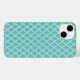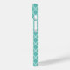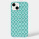 Das Gehäuse des iPhone 14 von Apple wird in einem aquamarinen und weißen Musterdruck dargestellt. Anpassen oder kaufen, wie es ist. Bild