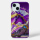 Ein abstraktes Felsendesign in verschiedenen Violett-, Weiß- und Goldtönen ziert diese Apple iPhone 15 Hülle (Case Mate).