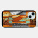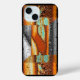 Ein rustikales Design in Schattierungen von Türkis, Orange, Schwarz und Weiß ziert diese Apple iPhone 15 Hülle (Case Mate).
