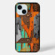 Ein rustikales, rauh aussehendes Design in Schattierungen von Orange, Türkis, Braun und Grau überzieht diese Apple iPhone 15 Hülle (Case Mate).