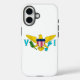 Show your island spirit with our Apple iPhone 16 Case featuring the flag of the Virgin Islands, USA! This elegant and symbolic design captures the beauty and strength of the islands through the proud American eagle clutching the olive branch and arrows — universal symbols of peace and power. Surrounded by vivid tones of blue, gold, green, and red, it reflects the tropical charm, warmth, and vibrant culture of the Caribbean. Perfect for daily use or as a meaningful gift, this case combines heritage, artistry, and modern design in a single captivating accessory.