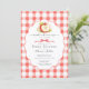 Celebrate the upcoming arrival with this sweet “Apple of Our Eye” baby shower invitation. This charming design features a watercolor apple with delicate blossoms and a gingham bow, set against a classic red gingham background for a warm farmers market–inspired look. The elegant scalloped frame and soft script typography create a timeless, rustic style perfect for a fall baby shower, apple-themed shower, or farmhouse baby shower celebration. Easily personalize the text with your event details to create a memorable invitation for friends and family.