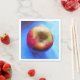 Ein Kunstdesign eines Apfels vor blauem Hintergrund.