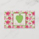 Un carte de visite pour des professeurs comportant un arrière - plan des roses de roses indien sur l'avant et le dos. L'avant comporte la pomme verte.