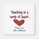 Personnalisez le texte du nom sur cet aimant pour présenter un cadeau d'appréciation de l'enseignant bon marché mais touchant et utile. Cardigraphie et texte proclament "L'enseignement est un travail de coeur". Créée avec la clipart sous licence achetée par Alice Smith de Clipart4Resale.