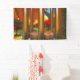 Après le vent, une seule feuille tombée se trouve là où elle est tombée sur un vent silencieux. Sur le sol sous l'herbe encore verte est recouvert de feuilles jaunes et rouges. Dans l'arrière - plan un verger d'automne crammson et or reflète ses couleurs dans les barres d'argent de la chaux.
