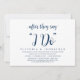 Moderne et élégant, carte d'invitation de mariage en fuite sur le thème du bleu marine (Après qu'ils disent OUI). C'est parfait pour votre dîner de mariage en fuite décontracté au bord du lac, danser et faire la fête.