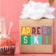 Modernes Après-Ski-Design in farbenfrohen Farbblöcken und farbigen Buchstaben. Alpine Skiöffnung, Skigebiet, Ski Zuhause Design. Wunderschönes Wintersportspass für Skifahrer im Freundeskreis, bei Kollegen oder in der Familie. Retro-Skifahrer gestalten Kunstwerke. Skifahrer Ski Wohngestaltung, Skiteam, Skicoach Geschenk.