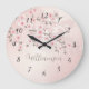 Apricot Cherry Blossom Monogramm Große Wanduhr