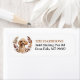 Die links Seite dieser Rücksendeadressen-Aufkleber zeigt ein Portrait eines kleinen Aprikosenhundes. Das Bild ist in einem hübschen Herbstblumenkranz und Blätterkranz in Braun-, Bräunungs- und Cremetönen eingefasst. Ihr eigener Text ist rechts in schwarz und goldbraun.