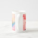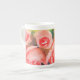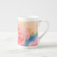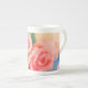 Eine weiche und feminine Knochen-China Tasse mit einem Aquarellbild von aprikotfarbenen Rose.