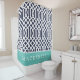 Aqua and Navy Trellis Monogram Duschvorhang