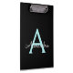 Black and Aqua Aquamarin Blue Monogram Name Planning Clipboard. Das macht den perfekten 16 Geburtstag, Hochzeit, Brautparty, Jubiläum, Babydusche oder Junggeselinnen-Abschied Geschenk für jemanden, der Lieben glamourösen Luxus und schicke Stile.