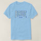 Celebrate your engagement era with this aqua + beige stripe with navy BRIDE design. The classic collegiate lettering gets a modern update with a modern stripe fill. Perfect for engagement parties, bridal showers, bachelorette weekends, and wedding prep days. Click on "personalize this design" to add your details. Matching wedding party gifts, Bridal Shower Accessories, and Bachelorette Party must-haves are available. Please message us with questions or to request custom items. Pair this comfy tee with jeans or a matching set for a photo-ready look that says Bride Energy. Wear it as a cozy sleep shirt or a swimsuit cover-up. Also available on sweatshirts and hoodies for travel or lounging with your bridal crew.