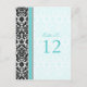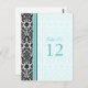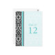 Verwenden Sie die Option "Persönlich gestalten", um die Tischnummer dieser eleganten aqua- oder türkisfarbenen, schwarzen und weißen Damast-Tischkarten zu ändern. HINWEIS: Sie MÜSSEN die Tischnummer auf jeder Karte ändern und jede Nummer Ihrem Warenkorb hinzufügen. Wenn Sie gewollt haben, umfassendere Änderungen vorzunehmen, z. B. den Schriftart, die Farbe des Schriftartes oder die Größe des Schriftartes, verwenden Sie die Option Anpassen.