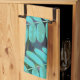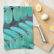 Das originelle, abstrakte Kunstwerk in Aqua auf diesem Küchentuch wurde aus einem originalen Schließfoto von ZoeSPEAK eines königlichen Poinciana-Baumes gemacht. Dieser tropische Baum ist sehr jung, und die zarten Blätter reihen sich zwei mal zwei entlang ihrer ultra dünnen Zweige.