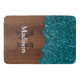 Aqua-blaue Glitzern, rustikal-braunes Holz Monogra Badematte