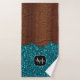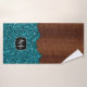 Aqua-blaue Glitzern, rustikal-braunes Holz Monogra Badhandtuch Set