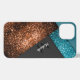 Personalisieren Sie ein einzigartiges iPhone Gehäuse mit Ihrem Initial und Namen. Aqua Blau und Bronze Glitzern modernen Farbblock. Geometrisches Design Farbblock Kunst der aquatisch blauen türkisfarben und orange braun Glitzern. Wir verwenden Foto von Glitzern nicht wirklich Glitzer!