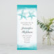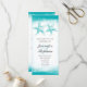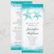 Élégant programme de mariage de plage blanche avec un couple d'étoiles de mer turquoise et lumineux.