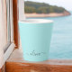 Aqua Blue Aquamarin einfache Script Monogram Name Latte Coffee Cup Tasse. Das macht den perfekten 16 Geburtstag, Hochzeit, Brautparty, Jubiläum, Babydusche oder Junggeselinnen-Abschied Geschenk für jemanden, der Lieben glamourösen Luxus und schicke Stile.