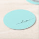 Aqua Blue Aquamarin Modern Script Monogram Name Runder Pappuntersetzer