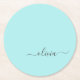 Aqua Blue Aquamarin Simple Script Monogram Name Paper Untersetzer. Dies macht den perfekten Abschluss, Geburtstag, Hochzeit, Brautparty, Jubiläum, Babydusche oder Junggeselinnen-Abschied Geschenk für jemanden, die Lieben glamourösen Luxus und schicke Stile.