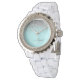 Aqua Blue Aquamarin Silver Glitzer Monogram Armbanduhr