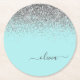 Aqua Blue Aquamarin Silver Glitzer Monogram Runder Pappuntersetzer