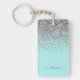 Aqua Blue Aquamarin Silver Glitzer Monogram Schlüsselanhänger